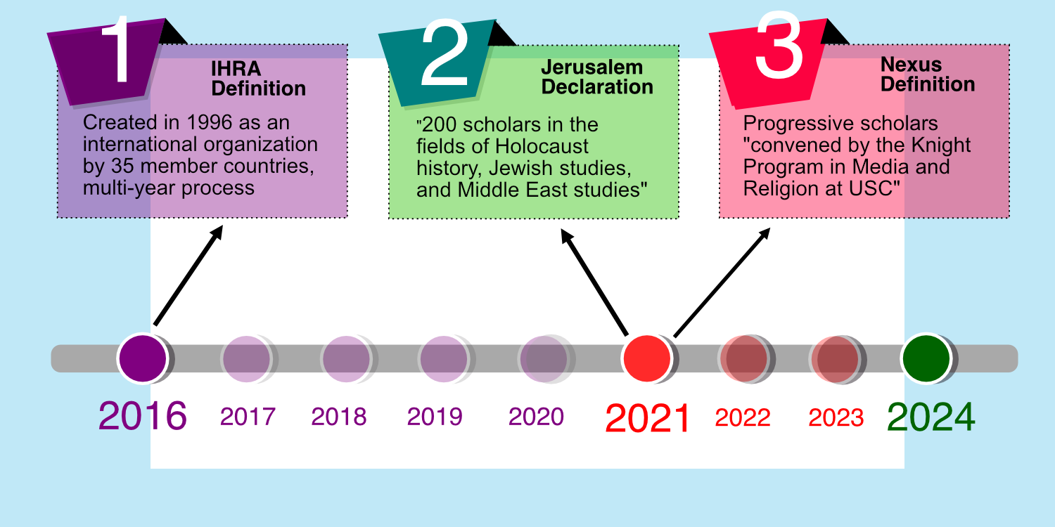 When Israel haters saw the important impact the IHRA definition was having on their rhetoric of vilification and hatred, they came out with “rival” definitions to make it seem like IHRA was “controversial” because it “suppressed” their free speech.